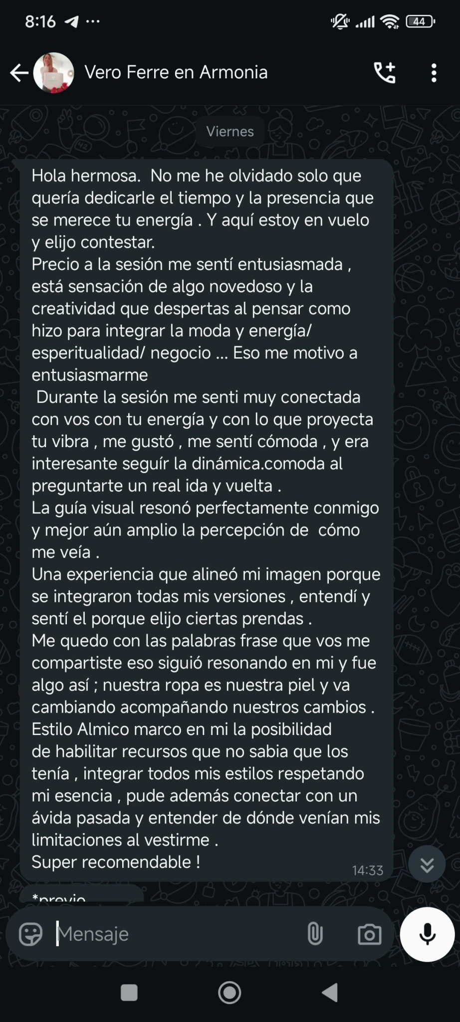 Esta sesión 1:1 es una experiencia canalizada donde fusiono la asesoría de imagen con la lectura de tus Registros Akáshicos. Juntas vamos a revelar el estilo de tu alma, para que tu imagen refleje quién sos realmente y potencie tu energía.